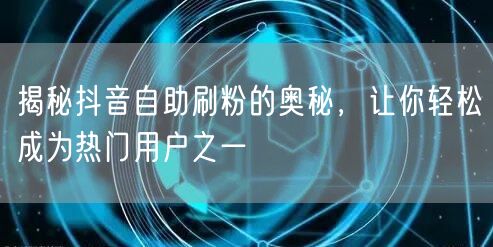 揭秘抖音自助刷粉的奥秘,让你轻松成为热门用户之一