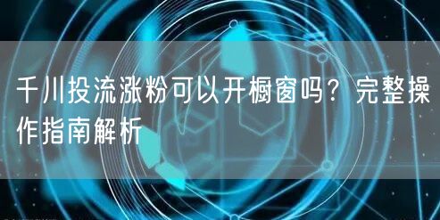 千川投流涨粉可以开橱窗吗?完整操作指南解析