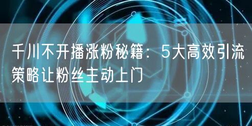千川不开播涨粉秘籍:5大高效引流策略让粉丝主动上门