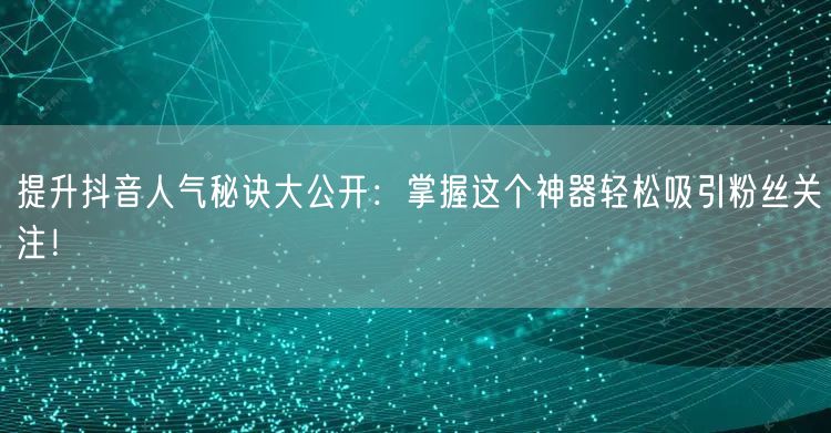 提升抖音人气秘诀大公开:掌握这个神器轻松吸引粉丝关注!